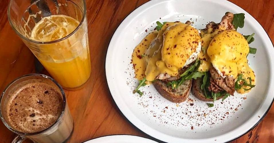 Num espaço arborizado em Pinheiros, o Botanikafé, comandado pelo casal de sócios Felipe Scarpa e Manuela Albuquerque, disponibiliza brunch o dia todo aos sábados e domingos, repleto de pratos saudáveis. O cardápio apresenta itens para pedir individualmente, como ovos beneditinos em diferentes versões, além de toasts, bowls de frutas e pratos mais substanciosos. Na linha dos beneditinos, o Rosbene (R$ 25 o simples e R$ 35 o duplo) é um dos mais pedidos e leva rosbife ou pastrami, ovo pochê, rúcula selvagem e molho hollandaise (à base de manteiga), no pão da casa. Para beber, há vários cafés, como o coado americano (R$ 6) e o espresso (R$ 6), além de bebidas com leite. O matcha latte, elaborado com chá verde japonês, leite e especiarias, pode ser quente ou gelado (R$ 14). Há também drinques alcoólicos, como o clássico mimosa (R$ 20), típico de brunch, com suco de laranja e espumante.