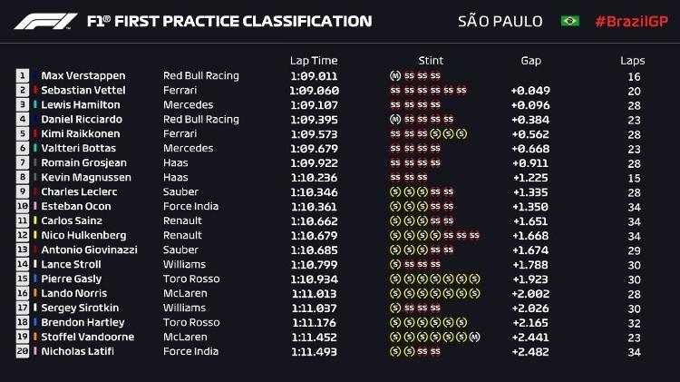 Confira os tempos do primeiro treino livre para o GP do Brasil de 2018: