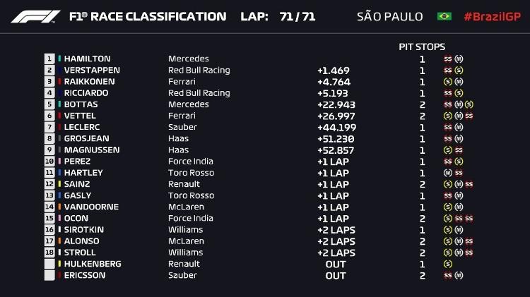 Confira a classificação final do GP do Brasil: